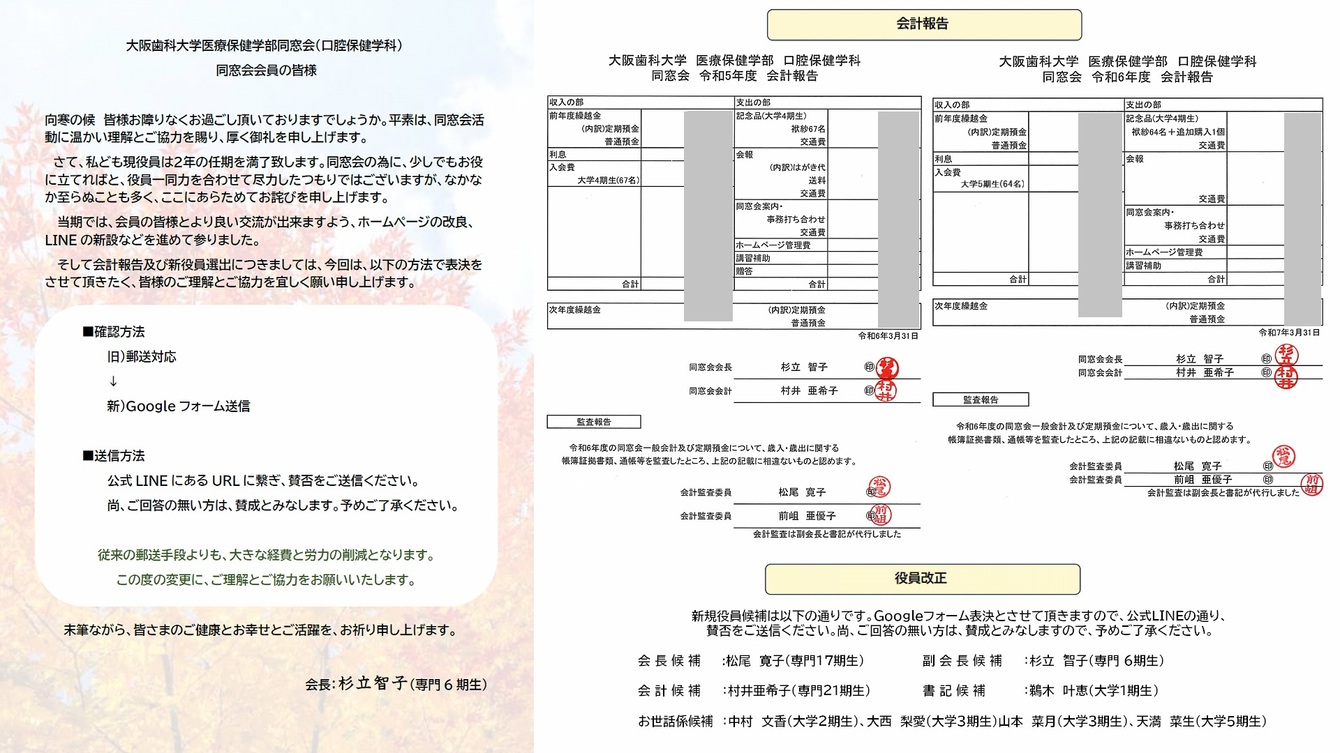 また、今年度からは、総会に関しても、メールとLINEにてご案内をさせて頂きました。(書面表決においても、Googleフォームからの返信とさせて頂きました。)